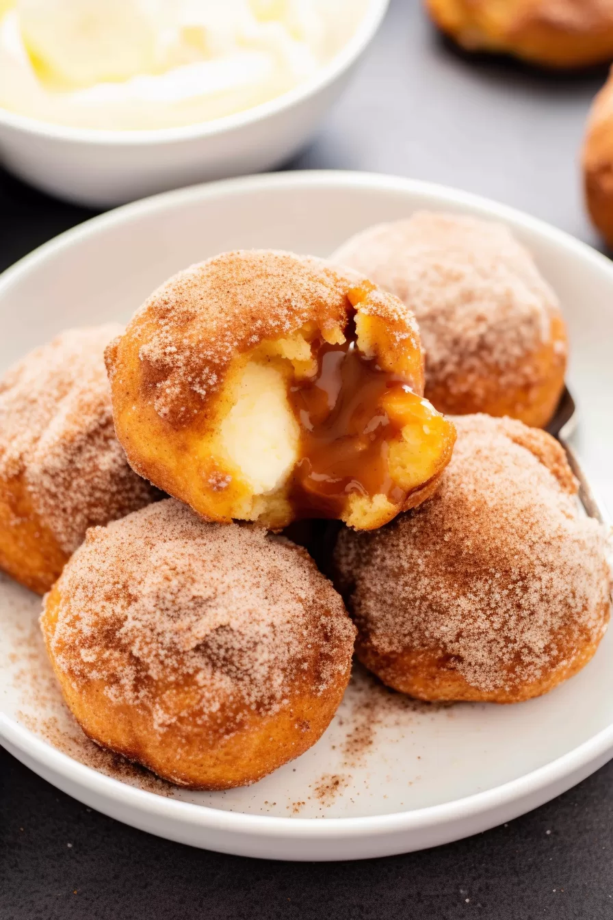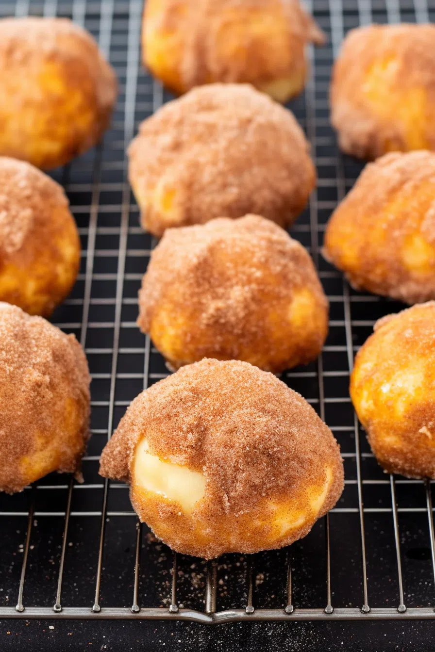 While still warm, dunk each bomb in melted butter (I see you, golden goodness), then roll it in your sugar-spice mix. Boom. Done.