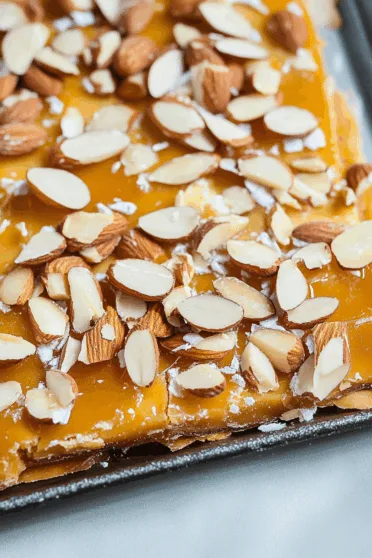 There’s something so deeply satisfying about the texture—the snap of the cracker, the chewy, caramelized layer, the toasted almonds. It hits that sweet-and-salty thing just right. And it’s messy in a beautiful way. Not Instagram perfect. Which, honestly? Makes it better.