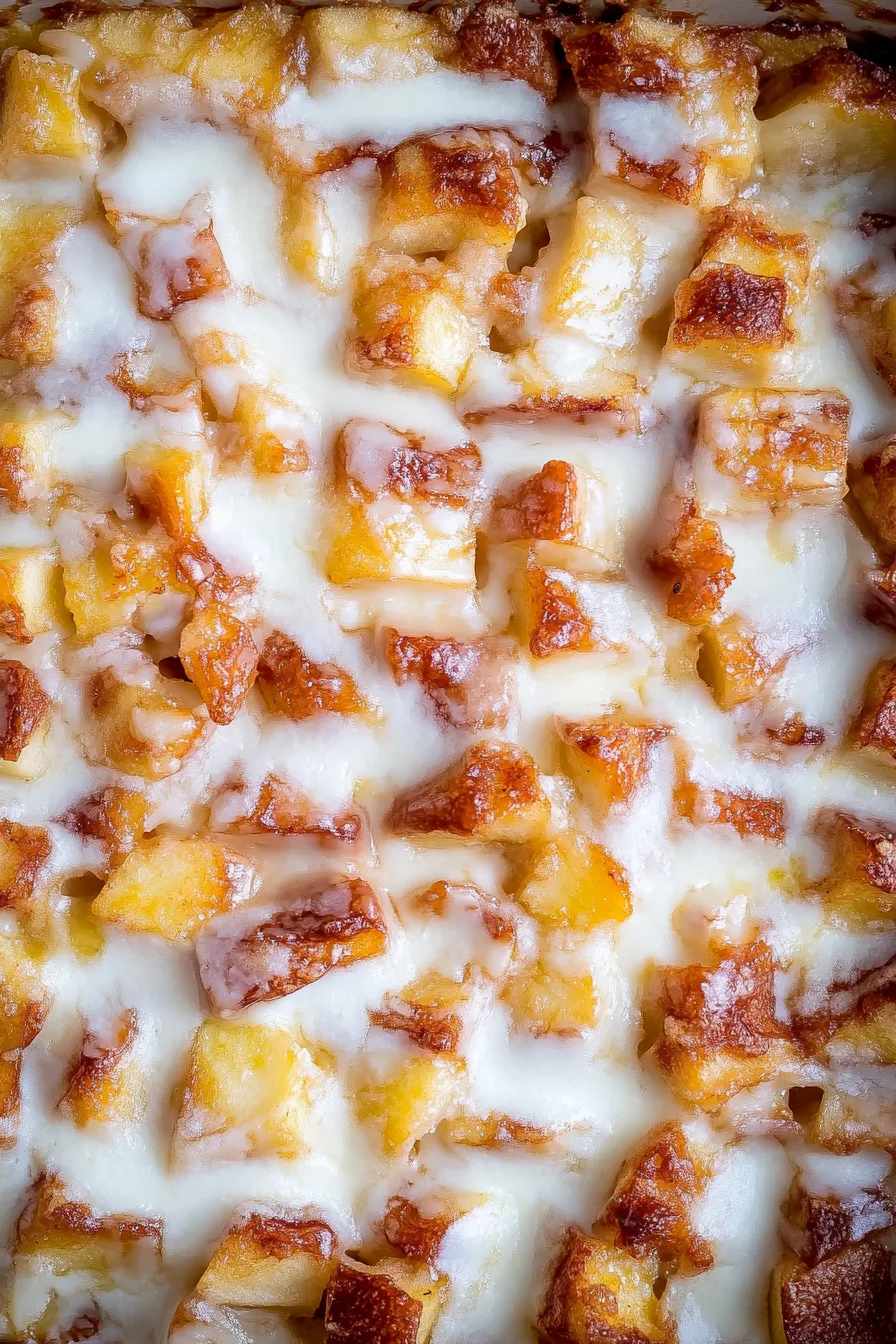 This Apple Fritter Breakfast Casserole Recipe layers croissants, apples, cinnamon, cream, and icing for a warm, crowd-pleasing breakfast.