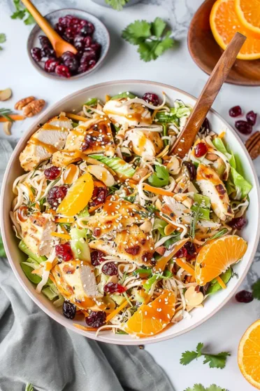 - Toss the Salad: Lightly pour the dressing over the salad mixture. Toss gently to combine everything. Adjust the amount of dressing to your preference. Serve immediately. And enjoy the vibrant, fresh flavors of this Asian Chicken Cranberry Salad.