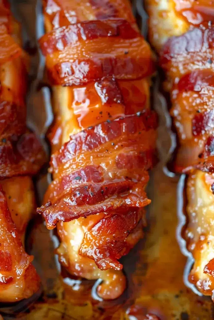 Let’s start with the obvious—bacon. I mean, anything wrapped in bacon gets my attention. Add in the brown sugar that melts and bubbles into this sticky glaze, and suddenly, a basic chicken tender becomes something way more fun. Like… “I ate three straight off the tray while standing over the stove” kind of fun.