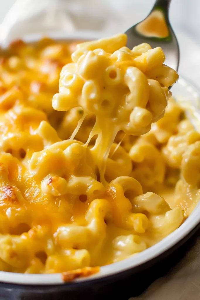 This recipe is all about simplicity. And richness. The combination of Velveeta cheese for creaminess. And sharp cheddar. For that perfect cheesy kick. Makes it stand out. What’s unique? Is that you bake everything together. So there’s minimal effort. And cleanup. The result is a baked mac and cheese. That’s creamy on the inside. And wonderfully cheesy on top. No stovetop prep needed—just bake. And enjoy!
