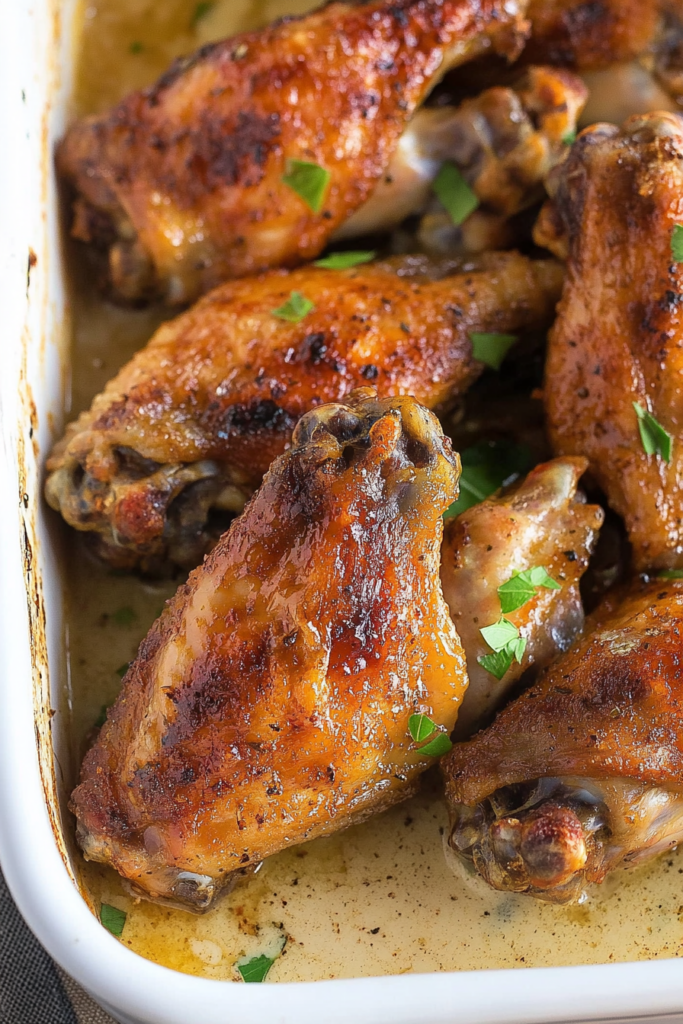 Pop the dish back in the oven, uncovered this time. Bake for another hour until the wings are browned, bubbling, and begging to be eaten. That sauce should be rich and slightly thickened. If it looks a little too thick? Add a splash of broth or water. No rules here—just taste.