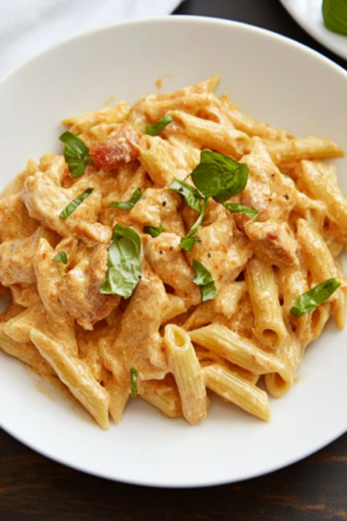 Return the chicken and pasta to the pan. Toss until everything’s coated in that luscious sauce. If it’s looking a bit thick, splash in some of that pasta water you saved.