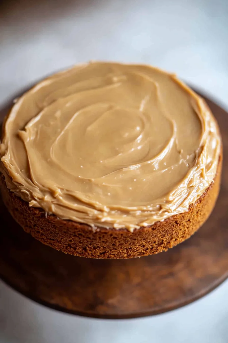 Grab your mixer and beat the caramel until it’s thick and spreadable. Too stiff? Add a splash of cream. Spread it on your cake layers, stack them up, and cover the top and sides. Don’t stress about perfect swirls—this cake wears “rustic” beautifully.