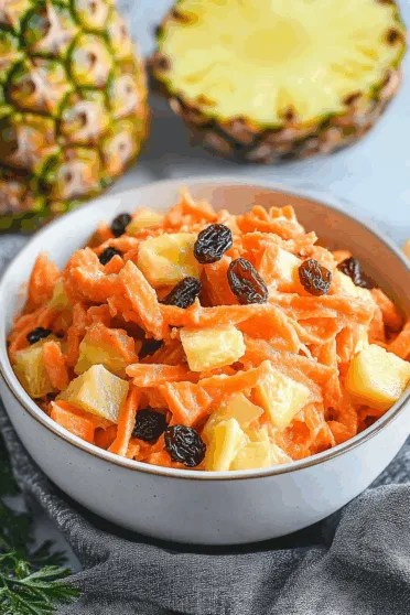 It was creamy. Bright. The carrots were crunchy but softened just enough by the dressing, the raisins were plump (ugh, sorry, but also accurate), and the pineapple added this surprise sweetness I didn’t even know I missed.