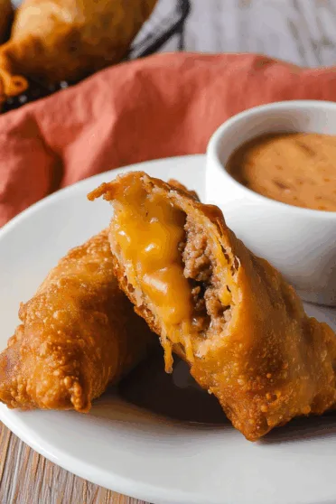 And there you go—crispy, cheesy, messy-in-a-good-way Cheeseburger Egg Rolls. They’re the kind of snack that makes people pause mid-bite and say, “Okay, you have to make these again.” Honestly, that’s the best compliment any cook can get.