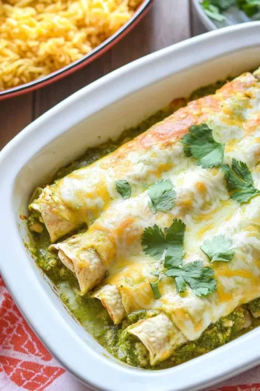 Cheesy Green Chicken Enchiladas – Looking for a flavorful. And cheesy meal. That’s sure to please the whole family? This Cheesy Green Chicken Enchiladas recipe. Is just what you need! With tender chicken and melty cheese. And a zesty green enchilada sauce. This dish is perfect. For a quick weeknight dinner. Prep time is 30 minutes. And it’s ready to serve. In just over an hour. Get ready to enjoy. A rich blend of spices. And creamy goodness.