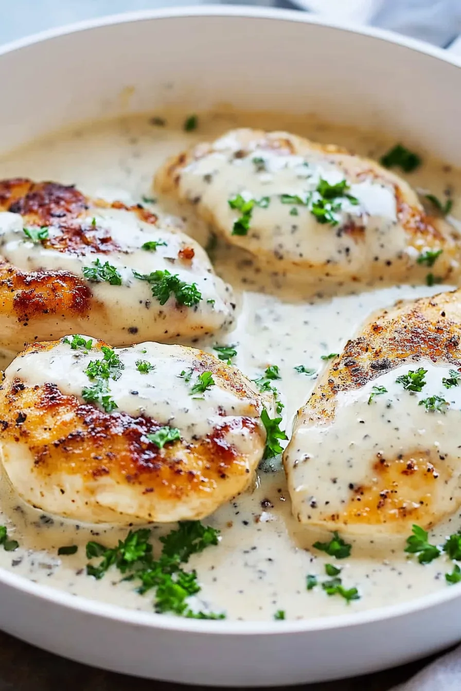 I remember craving something soft, warm, and maybe a little elegant, which was ironic because I was still wearing pajama pants with paint on them from a project I never finished. I found some chicken breasts in the fridge — a tiny bit freezer-burned, but we don’t judge — and one lonely bottle of white wine leftover from a dinner party where no one actually drank wine.