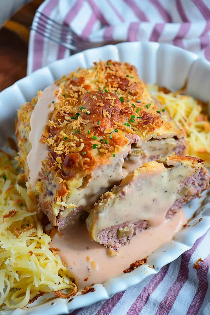 This recipe stands out. Because it combines the elegance of Chicken Cordon Bleu. With the comfort of meatloaf. The layers of ham. And Swiss cheese inside the meatloaf. Add a delightful surprise. With every bite. The rich, creamy mustard sauce. Poured over the top. Elevates the dish. Making it perfect for both weeknight dinners. And special occasions.