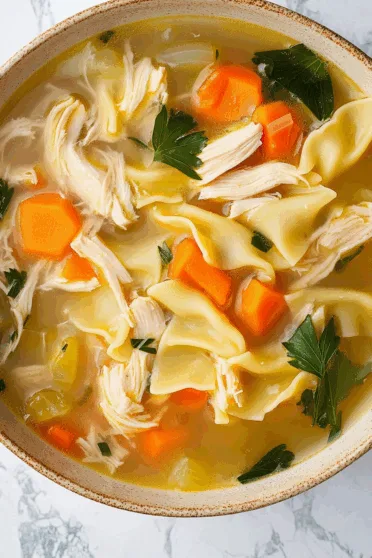 An hour later, the house smelled like my grandma’s kitchen, and the first spoonful? Magic. The broth was deep and rich, the egg noodles soaked up all that goodness, and suddenly, my chaotic day didn’t seem so bad.