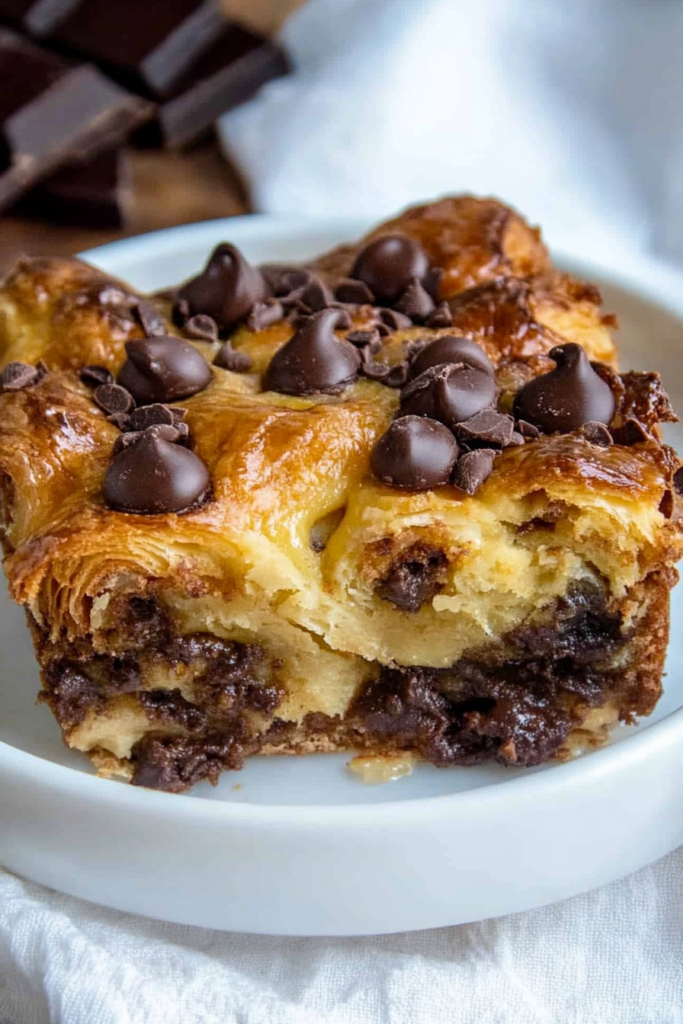 Flaky croissants, rich chocolate, and a creamy vanilla custard come together in this Chocolate Croissant Breakfast Bake—easy, indulgent, and perfect for brunch!