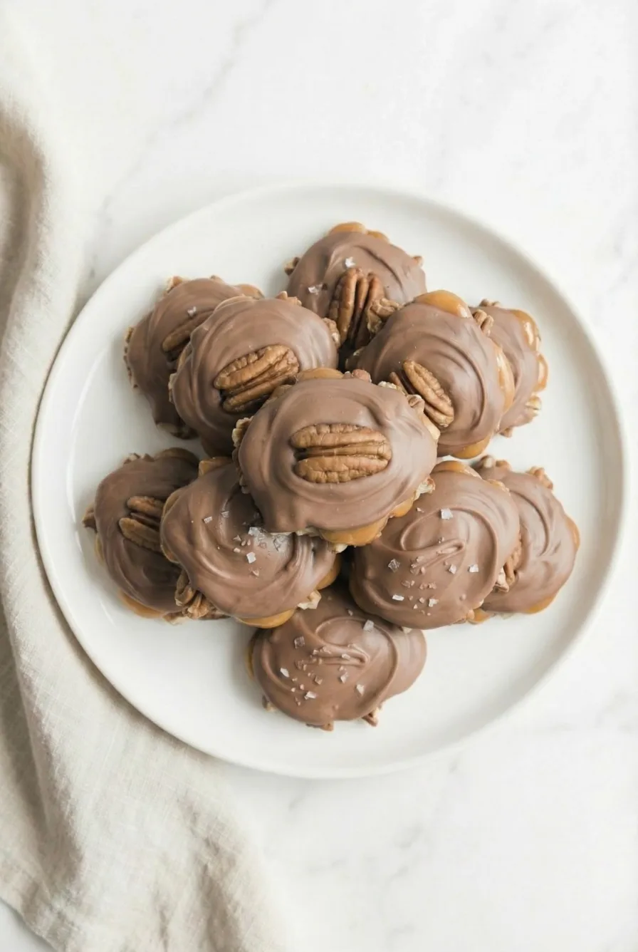 They’re made with five ingredients—five!—and yet they taste like something you’d buy at one of those boutiques where the workers wear aprons and use tongs for everything. It’s the contrast, I think. The soft caramel, the crunch of pecans, the smooth chocolate all wrapping around everything like they planned it. And don’t even get me started on the sprinkle of salt at the end. That tiny little sparkle somehow makes the whole thing feel more alive.