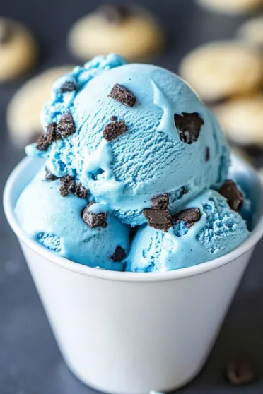 - Scoop the Cookie Monster Blue Cookie Crunch Ice Cream into bowls or cones. Garnish with additional cookie dough pieces, crushed cookies, or chocolate drizzle, if desired.