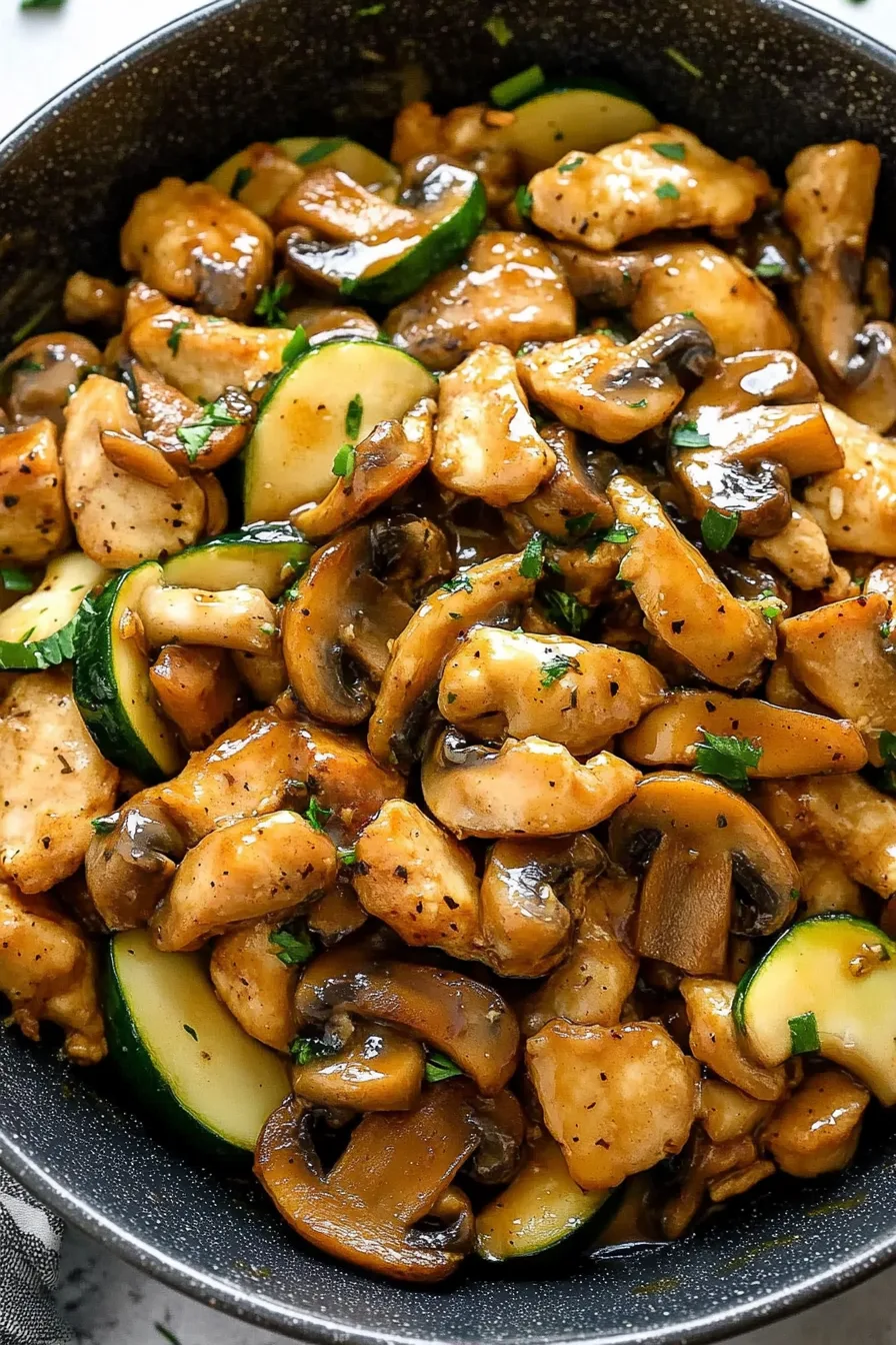 - In the same skillet, add the mushrooms and zucchini. Cook over medium-high heat for 2–3 minutes, stirring frequently, until the vegetables are crisp-tender.