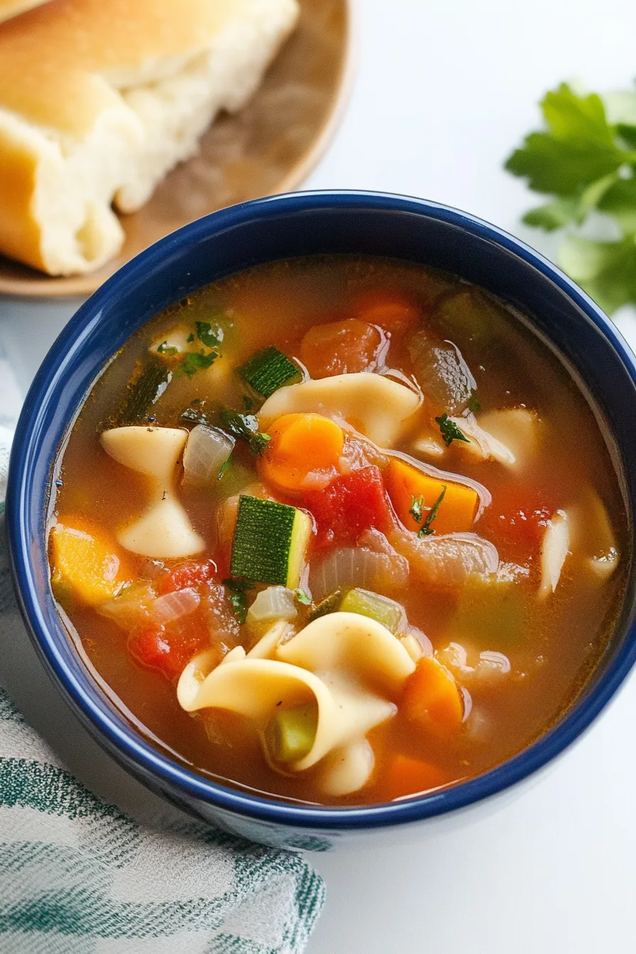 This Country Vegetable Soup Recipe makes enough to feed a crowd—or give you leftovers all week (lunch problem solved). Store it in the fridge for up to 4 days. The flavors actually get deeper, like it’s been stewing in its own goodness overnight. If you want to freeze it, go for it—it keeps up to 3 months. But here’s a tip: cook the noodles separately and add them later if you’re freezing. Otherwise, you’ll end up with soggy noodle mush, and nobody wants that.