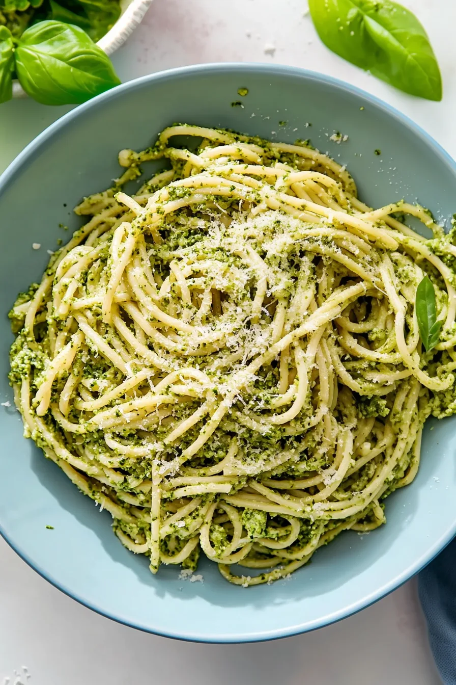 I threw everything into the food processor thinking, Well, worst case, I make toast instead. But when I tossed the spaghetti with that creamy broccoli pesto—this bright, silky sauce that shouldn’t technically taste creamy because there’s no cream—I had this weird little pause. Like that soft “oh wow” moment you get when something unexpectedly hits the spot. When I served it, my family did the thing where they take a bite, look up slowly, eyebrows raised, and you can tell they’re impressed but also kind of shocked. And honestly? That felt good. You ever make something that makes you feel a little proud even though it took like… ten minutes? Yeah. That was this Creamy Broccoli Pesto Pasta for me.