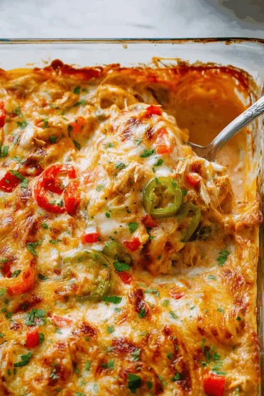 So there I was, holding half a tortilla and staring at the chicken I had already started cooking, thinking: “Cool. Guess we’re having sad chicken fajita bowls?” And then something clicked. I had cream cheese in the fridge, a couple of bell peppers, and a leftover half block of cheddar I’d been meaning to use. I did what any tired person would do—I threw everything into a baking dish, added cheese, and prayed to the dinner gods.