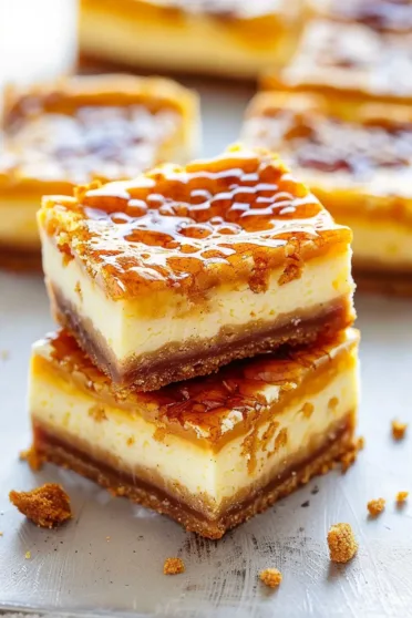 - Savor these Crème Brûlée Cheesecake Bars with a satisfying crunch!