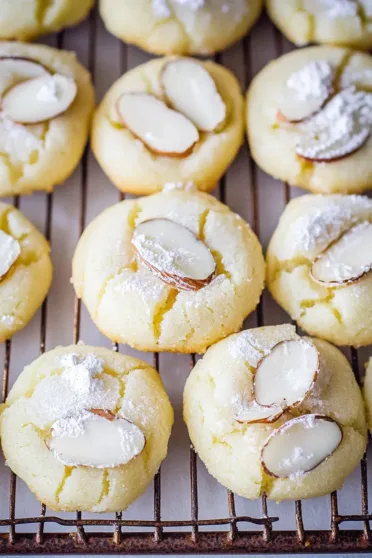 Step 7: Add the Finishing Touches: While the cookies are cooling. Whip up the glaze. By mixing powdered sugar. With almond extract, and water. Once the cookies are ready. Drizzle the glaze over them. Add a few almond slices. And let them set. Enjoy these little bites of heaven!