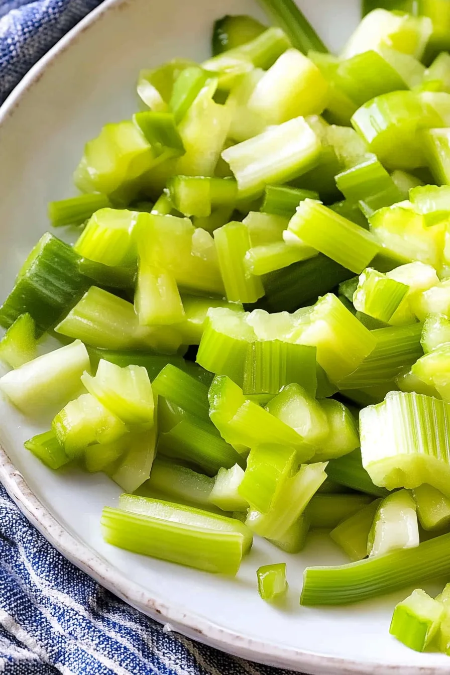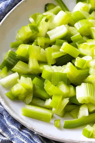 Celery: The main character. Thick slices = bold crunch. Thin slices = polite crunch. Both are valid.