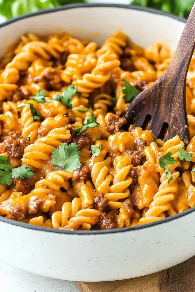 For an extra creamy and rich texture. Try adding 2 ounces of cream cheese to your pasta. Cut it into 1-inch cubes. And stir it in during the last 2 minutes of cooking. The cream cheese will melt beautifully into the sauce. Giving it a luxurious feel. If you’re feeling adventurous. You can also toss in some thawed corn. For a sweet, juicy burst. In every bite. This small addition. Can elevate the dish. Making it even more delightful. And don’t forget the toppings! A sprinkle of fresh cilantro, some diced green onions, or a dollop of sour cream. Can really take your Easy Enchilada Pasta. To the next level.