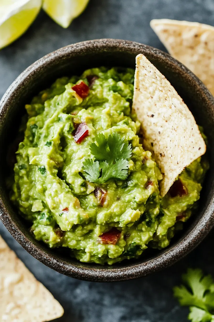 For the best guacamole. Let your avocados be the star! Avoid over-mashing them. Leave a few chunks. For a more rustic texture. If you want to take your guacamole to the next level. Try roasting the garlic and jalapeños. Before mixing them in. Roasting brings out a sweeter. More complex flavor. That adds depth to the dip. Another tip: don’t skip on the lime juice! It’s not just for flavor. It keeps your guacamole looking fresh and green. By slowing down oxidation. Finally, if you’re making this guacamole ahead of time. Press a layer of plastic wrap directly. Onto the surface before refrigerating. This little trick. Will keep it from browning too quickly. Ensuring your guac stays vibrant. Until it’s time to serve.