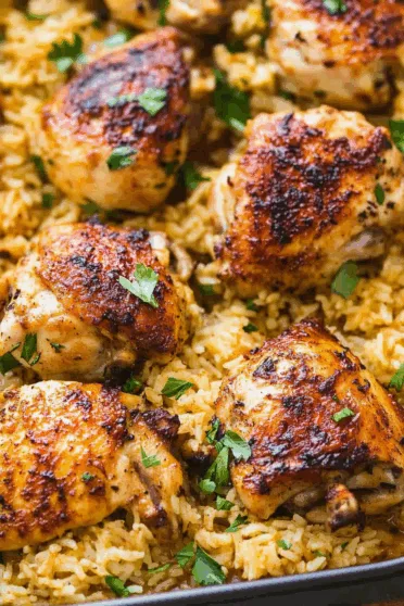 It weirdly reminded me of this one Sunday when I was a kid — my dad had burned dinner (which he still denies), and my mom swooped in with a simple chicken-and-rice bake like some kind of domestic superhero. The whole house smelled like garlic and paprika, and I remember sitting at the table thinking that dinner had this magical ability to make everything feel normal again. That memory just dropped into my brain as I stared at the raw chicken on my counter. I didn’t have my mom’s loose, no-recipe-needed confidence, but I had thighs, rice, and spices… and honestly, that felt like enough.