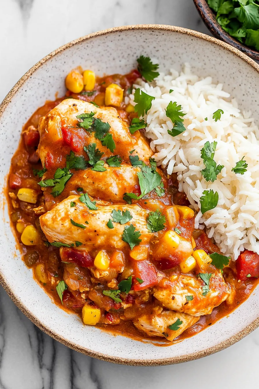 Another thing I love? This recipe is flexible. You can serve the chicken over rice one night, shred it into tacos the next, or just eat leftovers cold straight from the fridge while you contemplate life (no judgment—I’ve done it). It’s the kind of dish that doesn’t ask for perfection, which oddly makes me like it even more.