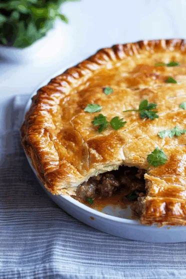 Savory ground pork, beef, onion, and potatoes spiced with cinnamon and cloves, baked in a golden crust—this French Meat Pie is comfort on a plate.