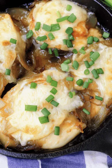 French Onion Flavored Chicken made with caramelized onions, juicy chicken breasts, beef broth, and provolone cheese—comfort food that feels fancy but cooks up in 30 minutes.