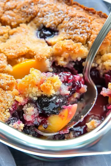 This cobbler hits all the right notes. The peaches and blueberries get so soft and juicy while they bake, creating this beautiful, sweet sauce that bubbles up around the cobbler topping. And that topping? It’s golden, buttery, and has just the right amount of sweetness with a hint of cinnamon to balance out the fruit. Plus, it’s easy to make—no need to fuss with dough or complicated techniques. You get all the warmth and comfort of a homemade dessert with minimal effort. Serve it with a scoop of vanilla ice cream, and you’ve got yourself a dessert that feels like a hug in a bowl.
