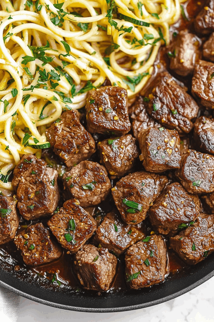 Anyway. I cooked the steak. Sautéed the noodles in garlic butter (because duh), tossed it all together, and the flavor? Kind of knocked me out. Like… buttery, garlicky steak that somehow feels light? That shouldn’t even be allowed. But here we are.