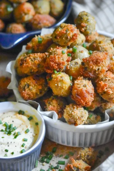 Golden Fried Olives & Creamy Aioli – Dive into the enchanting world of appetizers. With our Golden Fried Olives & Creamy Aioli. This recipe is not just a dish. It’s a journey to a world of crunchy, savory delights. Paired with the smooth, garlicky embrace of homemade aioli. Main ingredients include small pimento-stuffed olives. Panko breadcrumbs for that perfect crunch. And a concoction of mayonnaise, lemon juice, and garlic. To create the most delectable aioli.