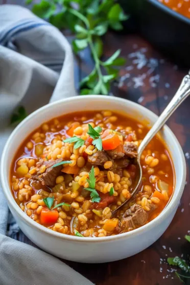 Reduce the heat to medium-low, cover partially, and let the soup gently simmer for about 1.5 hours. The beef will get tender, the barley will soak up all those flavors, and you’ll be wondering why your kitchen suddenly smells like pure comfort.