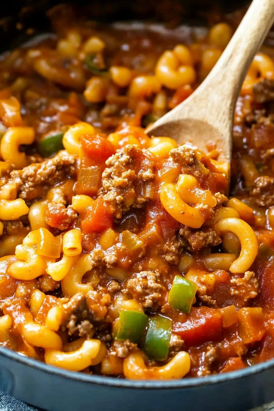 It’s the combination that does it: the savory ground beef, that soft sweetness from the onions and green bell pepper, the elbow macaroni soaking up every bit of sauce. And the consommé? Oh man. It’s such a tiny detail but somehow adds that “you can’t put your finger on it but it tastes right” depth. I’ve made this dish maybe a dozen different ways, and I’m always surprised by how forgiving it is—like even if you’re not paying perfect attention (guilty), it still turns out comforting.
