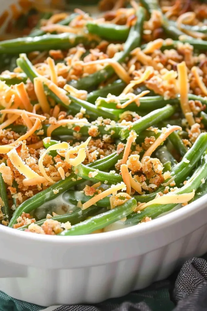 This Homemade Green Bean Casserole stands out. For its ease and comforting qualities. It requires minimal prep time. Making it perfect for busy cooks. Or last-minute meals. The combination of soft green beans and creamy soup. Topped with crunchy fried onions. Offers a delightful mix of textures. Moreover, this recipe is incredibly versatile. Easily adaptable with additions like cheese, bacon, or different types of cream soup. To suit any taste.