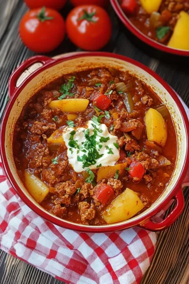 - Ladle the goulash into bowls and garnish with a dollop of sour cream or fresh parsley, if desired. Serve with crusty bread or your preferred accompaniment.