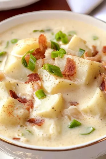 Irish Potato Soup – You ever have one of those meals that take you straight back to a specific moment? That’s what Irish potato soup does for me. I still remember sitting at my grandma’s kitchen table, watching her stir a big pot of soup on the stove. She didn’t use a recipe—just a pinch of this and a splash of that—and yet it always came out perfect.