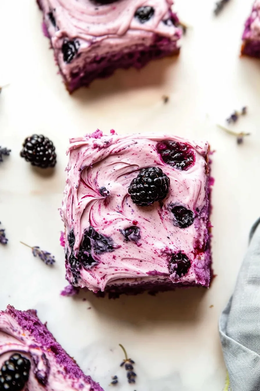 I always joke that the Lavender Blackberry Cake technically can last four days in the fridge… but rarely does. Still, if you’re stronger than me, keep it airtight and cold. Freezes great too—sometimes I freeze slices just so I don’t accidentally eat half the tray in 24 hours. (Not kidding.)