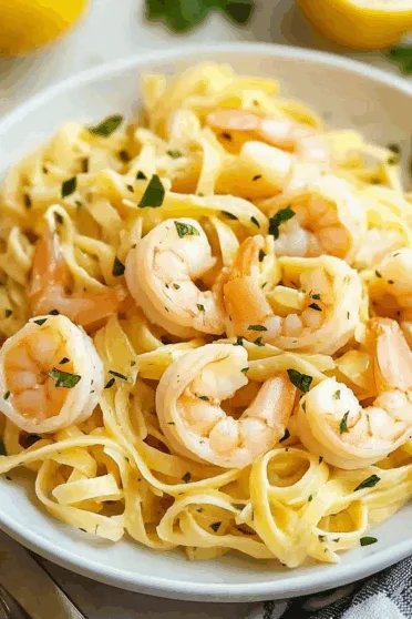Creamy Lemon Shrimp Pasta made with shrimp, garlic, fresh lemon, Parmesan cheese, and heavy cream. Quick, flavorful, and ready in 30 minutes!
