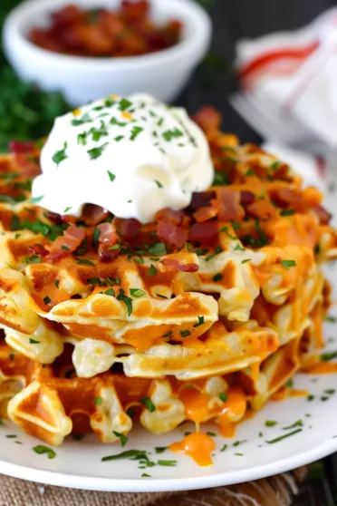 Loaded Hashbrown Waffles with Bacon and Cheese