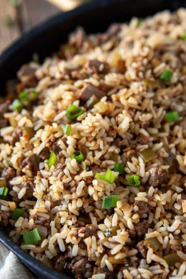 Savory Louisiana Dirty Rice made with ground beef, pork sausage, chicken livers, and aromatic veggies. A Cajun classic packed with flavor!