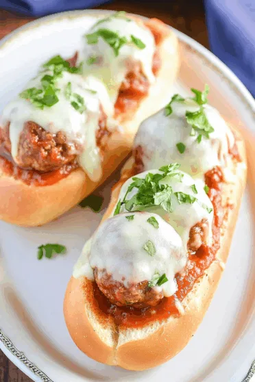 If you somehow have leftovers (rare), store them in an airtight container in the fridge for up to three days. Reheat wrapped in foil in the oven so the bread doesn’t dry out. You can also freeze the meatballs separately and assemble fresh later.