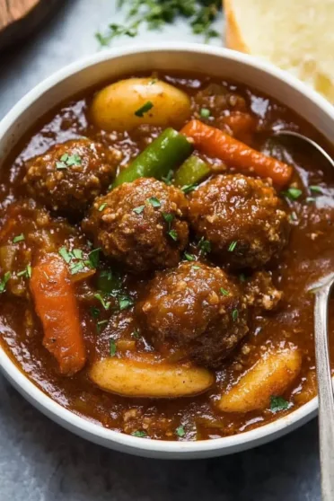 Meatball Stew – Ever have one of those days when you just need comfort food? For me, it was a chilly Sunday afternoon, and the weather couldn’t have been drearier. I remember staring at my pantry, uninspired, when I stumbled on this idea: meatball stew. I’d made meatballs before, sure, but putting them in a stew felt like an experiment.