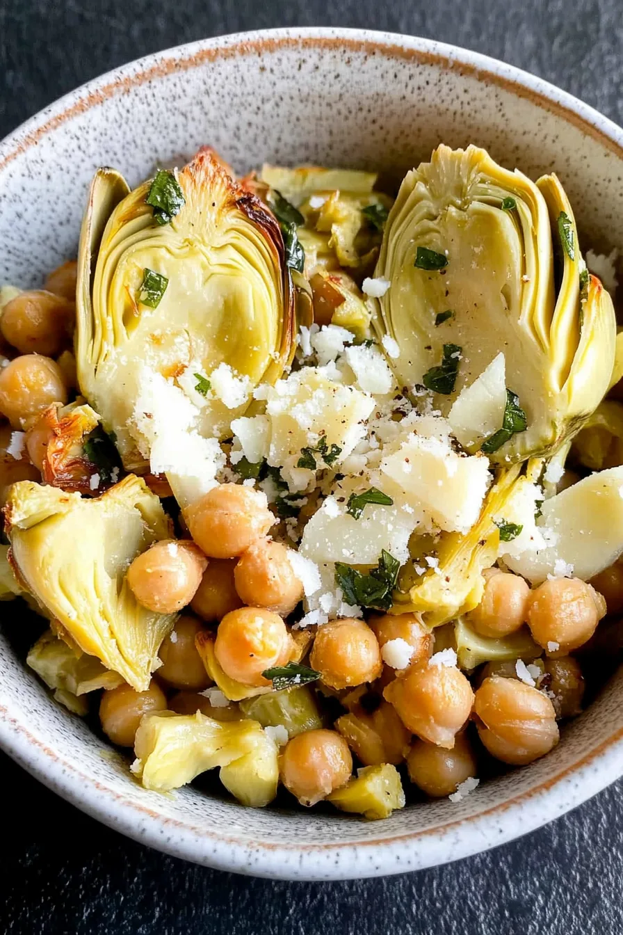 Funny thing is, this recipe stuck around. Like, really stuck. Now I make these roasted chickpeas and artichokes for my family of four — which still weirds me out in a sentimental way sometimes. I’ll be zesting a lemon while my kid insists they definitely brushed their teeth (they did NOT), and suddenly I’ll remember my 22-year-old self eating this straight from the pan at 11 p.m. while Googling “how to feel like a real adult” (didn’t help). Isn’t it strange how certain foods pull memories right out of you like that? Warm, lemony déjà vu.