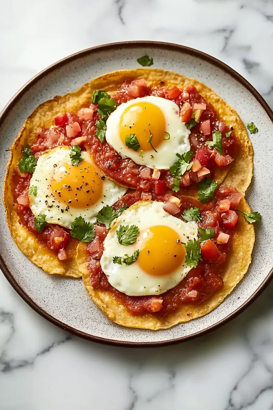 Build each plate with a spoonful of warm salsa, one tortilla, then an egg, more salsa, cilantro on top if you’re feeling fancy. Serve one or two per person depending on appetite, mood, or whether it’s been “one of those weeks.”