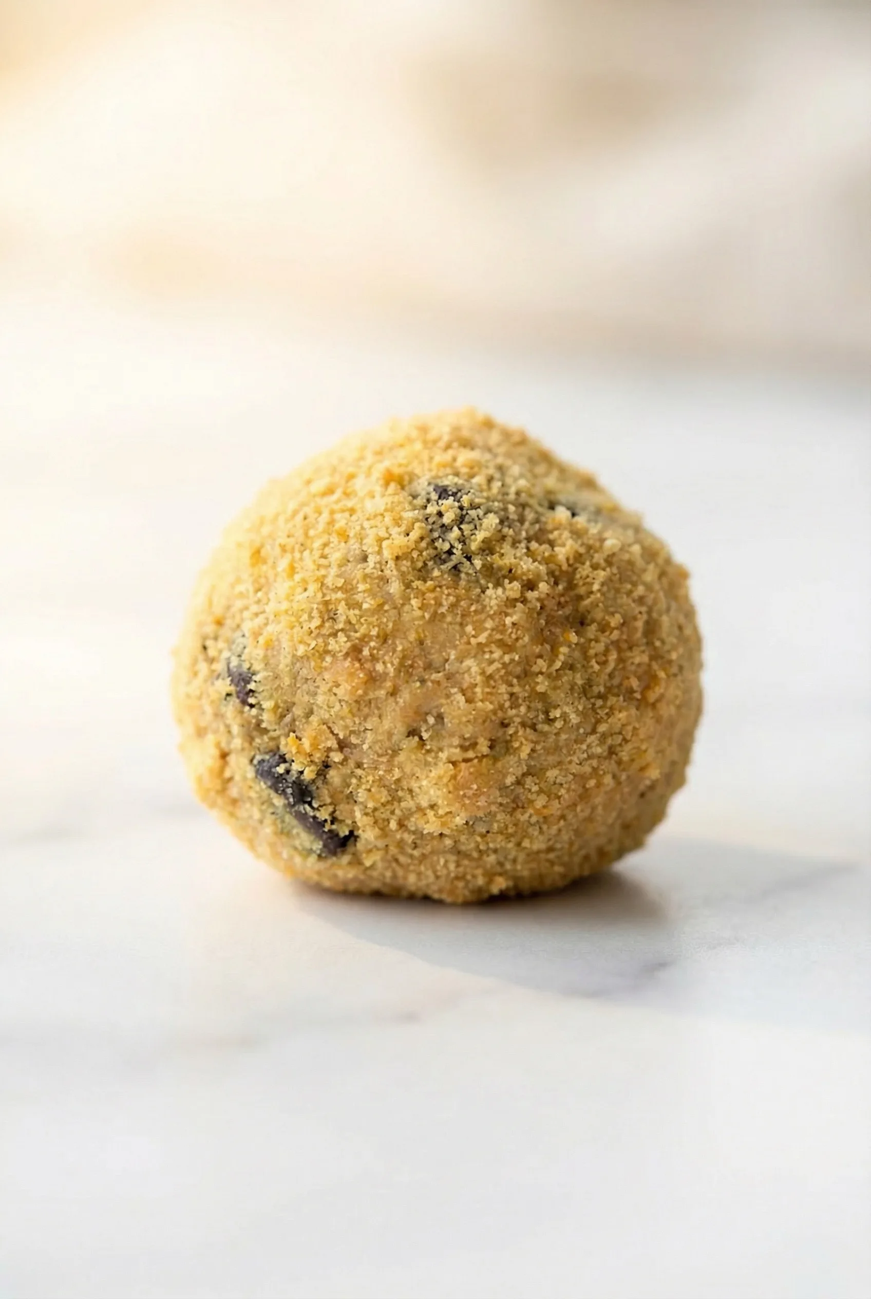 - After chilling take portions of the mixture. Roll them into balls that are roughly around 1 1/4 inches in size.