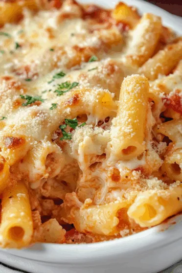 The first time I had it, I remember thinking, this is basically mac and cheese’s older, fancier cousin. It’s got five different kinds of cheese, a rich marinara-cream sauce, and that golden brown, slightly crunchy breadcrumb topping that makes every bite pure comfort food bliss.