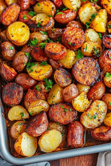 Spread on the sheet in one layer—crowding = no crispy edges. Roast for 50 minutes. Then test a potato with a fork. If it’s tender and edges are golden, you nailed it. If not, add 5–10 minutes.